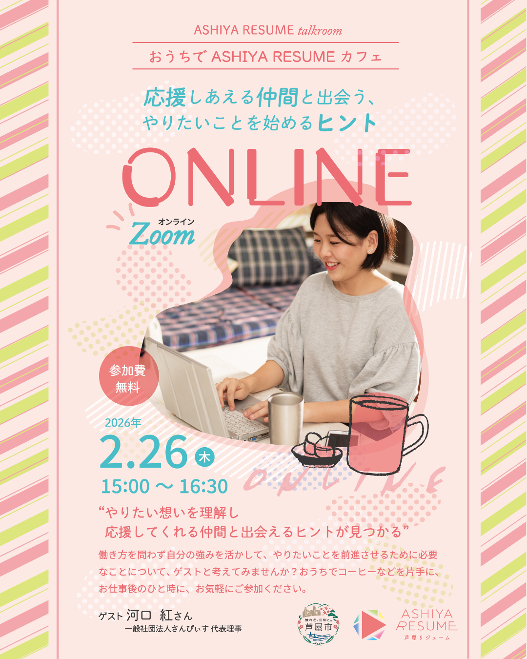 ASHIYA RESUME talkroom/おうちで ASHIYA RESUME カフェ~応援しあえる仲間と出会う、やりたいことを始めるヒント~